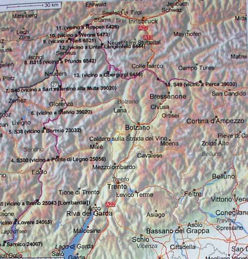Passi: Gavia (2.621 mt.) - Stelvio (2.758 mt.) - Resia (1.507 mt.) - Rombo (2.491 mt.) - M.Giovo (2.099 mt)