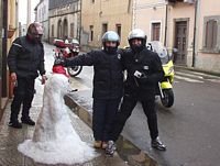 Dura poco, ma è intensa, si và con cautela Luca e Corrado fanno l'andatura poi io e gli altri a seguire, una spruzzata di neve tra Tresnuraghes e Magomadas dove facciamo una sosta, due battute e una simpatica foto!